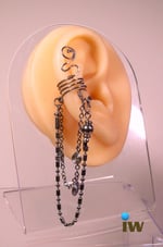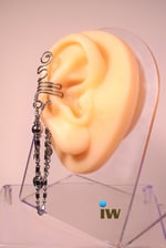 Dramatic spiraled and coiled 304 jewelry grade stainless steel ear cuff with 2 different style stainless chains and ball. Great look for those who love ear cuffs.