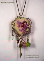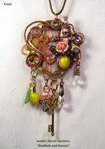 New pendants utilizing many materials with added layers of holographic films in the layers that cast changing prismatic light with every move. Hand painted and more. Each one holds a magical key that opens the gardens gates.