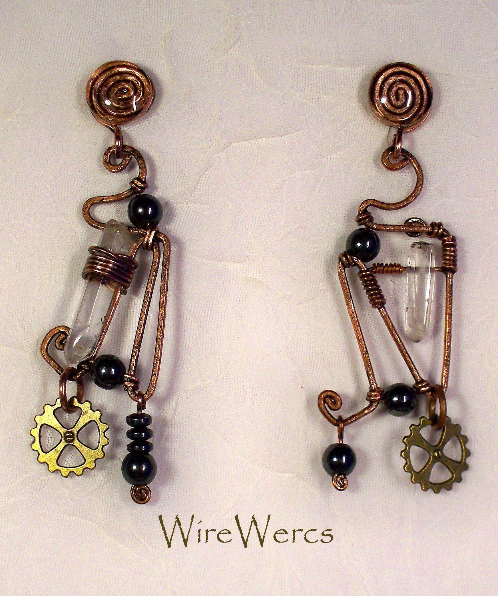 Hammerhead Quartz Powered One-of-a-Kind Original Earrings with Steampunk Style.