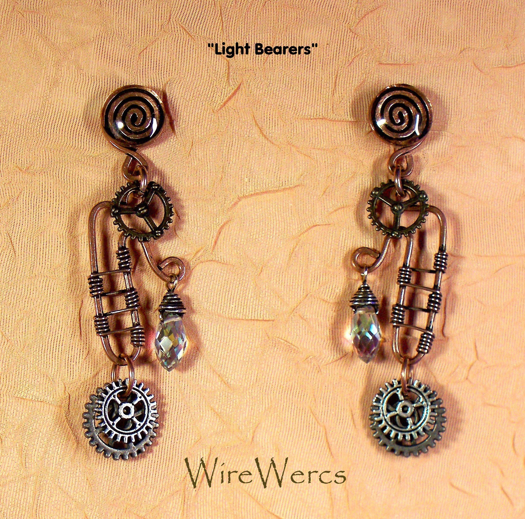 "Light Bearers" Steampunk Copper Wire One-of-a-Kind Earrings.